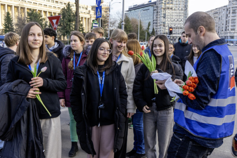 În doar câteva ore, 4.000 de lalele au fost dăruite în puncte centrale - Piața Unirii, Piața Universității, Piața Romană și Piața Victoriei, iar reacțiile au fost pe măsură: surpriză, emoție, râsete și numeroase momente spontane care au animat atmosfera și au transformat activarea într-o veritabilă sărbătoare a primăverii.